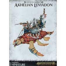 Shrugging off enemy missiles, the Akhelian Leviadon plunges into the fray. Scythed fins dismember foes while the beast’s powerful jaws clamp down with enough force to crush tempered steel. Should the aelves on its back come under assault, they strike out with hooks and blades, while the Ma’harr, the master of the reins and a high-ranking Akhelian, impales foes on his twin-pronged spear. Protected by its thick scales and nigh-impenetrable shell, the Leviadon acts as an indomitable anchor point in an Idoneth phalanx. Whether used as a living battering ram or as a mobile weapons platform, these enormous bond-beasts have proven themselves in battle time and again. This multi-part plastic kit contains the components necessary to assemble an Akhelian Leviadon. A large centrepiece model, it looms large above the Thralls and Reavers of an Idoneth army. 6 fins, 3 either side, propel it through the phantasmal seas; the frontmost pair of these are fitted with segmented blades, with the others featuring smaller but equally effective spurs, and each pair – along with the tail section, also fitted with piercing spurs – can be modelled in differing positions allowing for the illusion of flowing movement. Its head features an aggressive profile, with horns and spikes (and the option of a closed or open mouth), but the most notable feature is the blinders and chains – this beast is enslaved to the Ma’harr who stands to the front of the howdah, guiding it into battle. 2 crew either side each man a razorshell harpoon launcher and a Void Drummer – whose insistent pounding beat distorts light itself, providing cover from enemy fire – stands at the back. The Leviadon includes a host of accessories for adding detail – 13 items, including bottles, jars, bags, lamp cases, cauldrons and nets. These accessories make perfect additions to the howdah, providing a lived-in atmosphere. This kit comes as 90 components, and is supplied with a Citadel 120x92mm Oval base, and a 75mm flying stem.