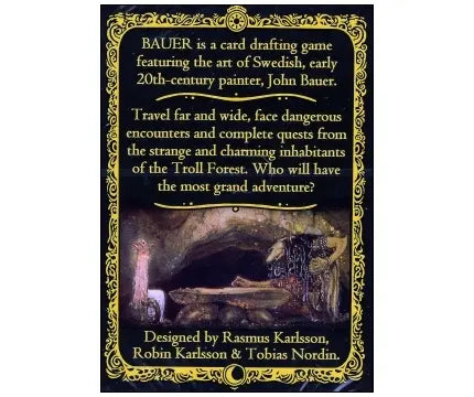 In Bauer, you go on a journey through the Troll Forest to see who is the biggest adventurer. Collect cards that tell the story of your adventure and are worth different amount of points depending on what other cards you have collected. In the end, the player with most points has been on the biggest adventure and wins the game!