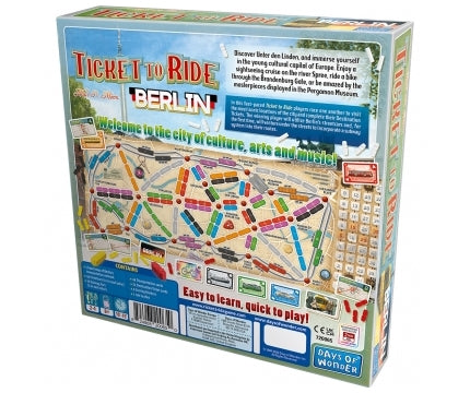 Ticket to Ride: Berlin är en snabbare version av spelet, där spelare tävlar om att besöka ikoniska platser i staden och avklara deras destinationsbiljetter. Spelare kan ta Berlins spårväg bland gatorna och kan även för första gången ta sig långt ner under marken för att använda stadens tunnelbanesystem!